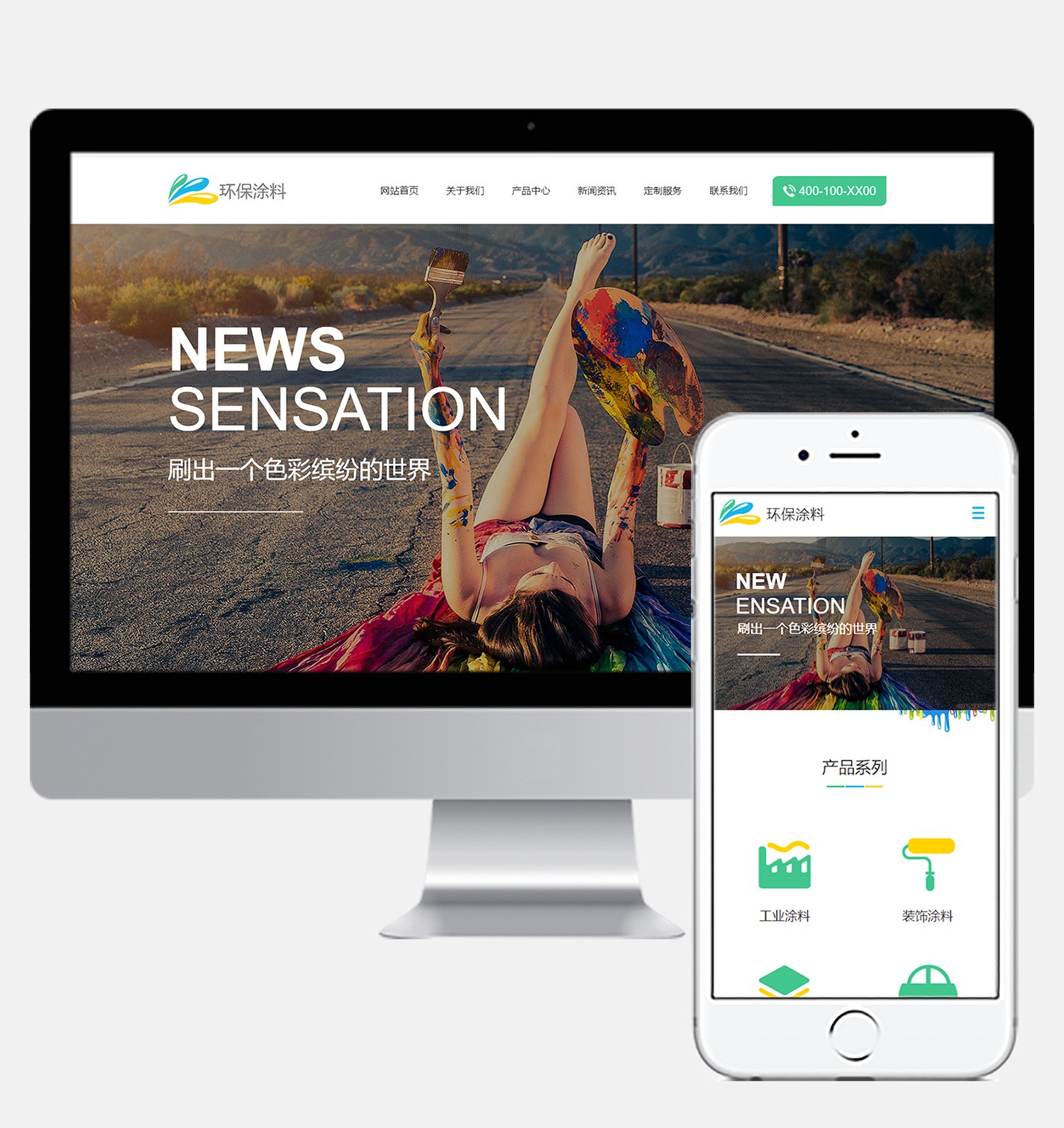 (自适应手机端)生态环保涂料pbootcms网站模板 环保水