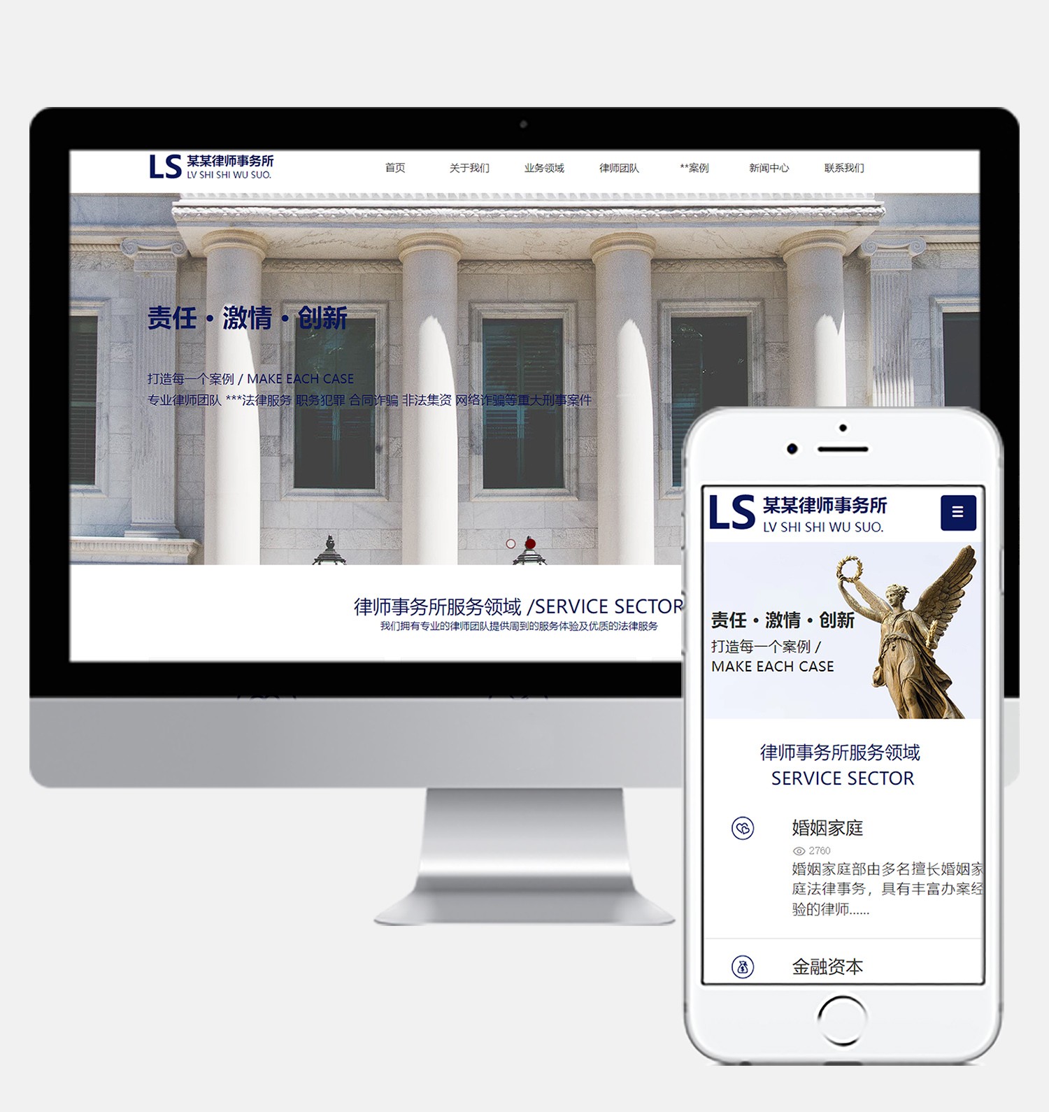 (自适应手机端)响应式pbootcms律师事务所网站模板 蓝