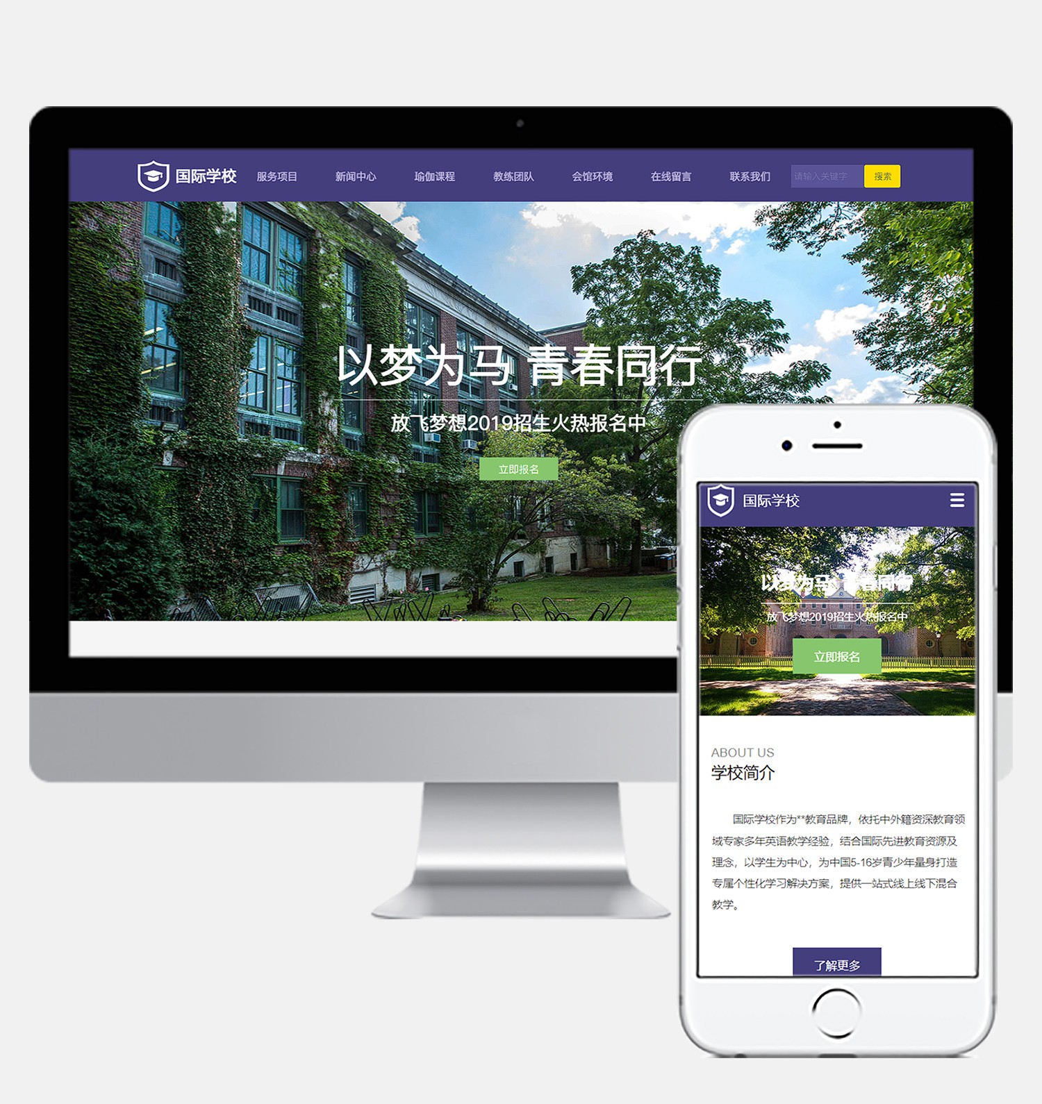 (自适应手机端)国际学校教育pbootcms模板 国际教育课